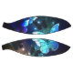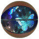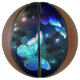 Fabulous, glowing, blue and yellow, night butterfly on dark background.