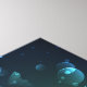 Fabulous, glowing, blue and yellow, night butterfly on dark background.