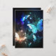 Fabulous, glowing, blue and yellow, night butterfly on dark background.