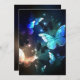 Fabulous, glowing, blue and yellow, night butterfly on dark background.