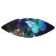 Fabulous, glowing, blue and yellow, night butterfly on dark background.