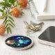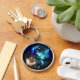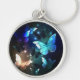 Fabulous, glowing, blue and yellow, night butterfly on dark background.