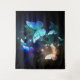 Fabulous, glowing, blue and yellow, night butterfly on dark background.