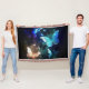 Fabulous, glowing, blue and yellow, night butterfly on dark background.
