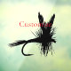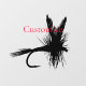 Black silhouette of a fly-fishing dry fly to customize with your own greeting, name, message, etc