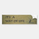 This bumper sticker features a fly fisherman silhouette, with a tight line and bent fly rod, as he's catching a large trout. The text reads 'It's a way of Life' on top of a stone look and natural coloured textured background. All fly fishermen and women would agree, if you love fly fishing, it is a way of life. Perfect gift for all fly fishing anglers.