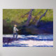 Fly fishing on the Wissahickon. Fisherman casting a line in the rushing swift water. Fishing art by REIFSNYDER.