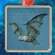 This is a vintage image of a blue toned flying bat. It has a 3D appearance and is set against a background of various blues. See my store Art by MAR for matching products with this design.