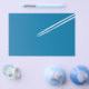 Flying airplane on a blue sky background flyer