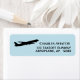 This return address label has a silhouette of a jet airplane flying. The background colour is blue, but you can delete or change that if you want to customize it.