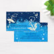 Cute business card for a quilter, seamstress or embroidery crafter featuring flying sewing needle angels in space with glowing stars, perfect for quilting, sewing or embroidery projects.