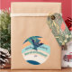 Cute flying stove with retro rainbow and snowflakes on this 'from the kitchen of' or "homemade by" Christmas to/from sticker for gifting your list with foods, sweets, and treats.