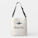 Flying around the world on ivory Crossbody Bag. Text can be personalized. Carry your flying dream with you. More than just a bag!