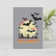 A invitation that says "Break from the Grind" with a Halloween image of bats flying up from a town in front of a glowing moon is a playful and spooky design, often worn by those looking for a break from their daily routine. It suggests a desire to escape the stresses of everyday life and embrace a more adventurous or thrilling lifestyle.
