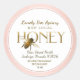 HONEY is written in a Metallic Gold font. Flying bee. Rose Gold Border.