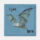 This is a vintage image of a blue toned flying bat. It has a 3D appearance and is set against a background of various blues. The text reads I Love Bats! See my store Art by MAR for matching products with this design.