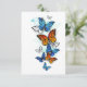 Flying, bright, blue butterfly morpho and orange monarch butterfly on a white background. Morpho. Monarch butterfly. Design with butterflies.