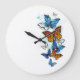 Flying Butterflies Morpho and Monarch Large Clock