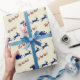 "Flying Festive Fun Santa Sleigh Reindeers Seamless Wrapping Paper" showcases Santa’s sleigh, reindeers, and lively "Ho Ho Ho" accents, creating a cheerful design that delights everyone.