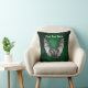 This throw pillow has a grey bat with wings spread flying from a spooky misty glowing green cave with barren trees. Customise your text with the template on the front and back.