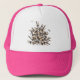 Pink and white trucker hat with coloured graphic of repeating pile of cessna 172