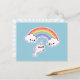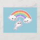 Kawaii flying narwhal with happy cloud friends and sparkle rainbow.