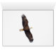 A sub-adult bald eagle soars in the sky with a three quarter moon in the sky behind.