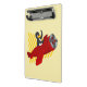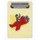 Clipboard with design with an illustration of a penguin flying a red plane; illustrated by Radka Kavalcova / MaxiHarmony