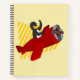Notebook with design with an illustration of a penguin flying a red plane; illustrated by Radka Kavalcova / MaxiHarmony