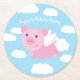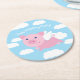 Flying Pig Cute Kid's Birthday Party Round Paper Coaster