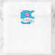 A customizable square shaped sticker featuring a digital cartoon pink pig with little white wings, dancing on clouds embellished with hearts up in the bright blue sky.