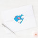 A heart shaped sticker featuring a digital cartoon pink pig with little white wings, dances on clouds embellished with hearts up in the bright blue sky.