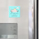 It was a bit smaller than expected, but I was too excited to check dimensions. The product itself send well printed though the grey text is a bit paint. Magnet worked perfectly on my fridge.