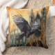 Flying Raven and Medieval Gothic Cathedral Throw Pillow