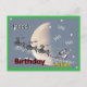 Flying Santa in Reindeer-Sled Birthday Postcard