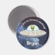 This design features a friendly, little, green alien in his flying saucer against a galaxy of stars. Perfect for any sci fi lover! Cute, space themed, magnet is sure to bring lots of smiles! Text says "You are my favourite earthling!" and you can also personalize it with a name if you wish. All text is customizable.