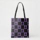 Fly away with these hand drawn witches to your spooky celebration! Black witches on a black and purple chequered pattern.