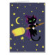A black cat flies through the night on a witch's broom while wearing her hat! This design is perfect for Halloween decorations! Customize or personalize it by adding your own text or images.