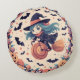 Flying Witch with Pumpkins Round Pillow