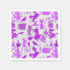 This image is a whimsical and colourful pattern filled with various Halloween-themed elements. It features witches riding broomsticks, a spooky tree, a black cat, a ghost, and a cauldron bubbling with a magical potion. There are also tarot cards, stars, and other magical details scattered throughout the design. The vibrant purple and pink colour scheme creates a festive and fun atmosphere, perfect for celebrating Halloween. The overall style is cartoonish and playful, making it suitable for a variety of Halloween-themed projects, such as decorations, invitations, or clothing.