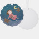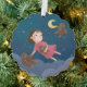 A cute illustration of a girl flying with gingerbread cookies in snowy night sky