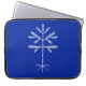 Neoprene foam laptop sleeve in Simon's Rock blue with a white chevron sapling on each side.