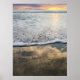 Photography of sea foam on the waves and wet sand at sunset at Moonlight Beach, San Diego, California.