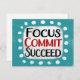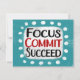 "Focus Commit Succeed" is a cute inspirational or motivational quote with a white accent shape surrounded by white textured whimsical dots.