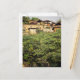 Focus on foreground trees. Jungle village near Postcard
