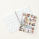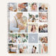 Customize this spiral notebook with 16 square photos arranged in a grid collage layout, with one large image and the remainder small. Your single initial monogram appears on a fog grey square at the lower right. Back cover has tone on tone stripes in matching shades of pale grey.
