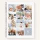 Customize this spiral notebook with eleven square photos arranged in a grid collage layout, with your single initial monogram on a blue-grey square the lower right. Back cover has tone on tone fog grey stripes.