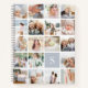 Customize this spiral notebook with 19 square photos arranged in a grid collage layout, with your single initial monogram on a fog grey square at the lower right. Back cover has tone on tone grey stripes.