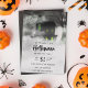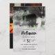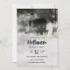 A spooky mansion coming out of the mist, in black and grey with accents of neon green. Original illustration by Becky Nimoy. Customize the party title to any party like "birthday party", "haunted house", "costume party" etc. Halloween graphic can be deleted.