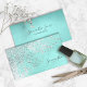 This stylish business card features an angled abstract background that sparkles in shades of glittering silver on teal. Add name, title or tagline on the front and contact details on the reverse side. A chic and professional choice for any beauty, fashion or style-related business. Shown here in standard business card size in horizontal format. Search ID775 to see other size, colour options and professions with this glam background pattern.